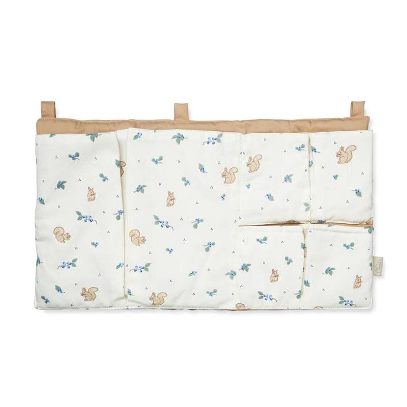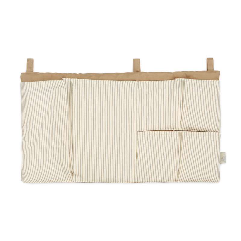 Praktisk og pæn Sengelomme til at hænge på tremmesengen, så sutter, bøger, nusseklude og andre...