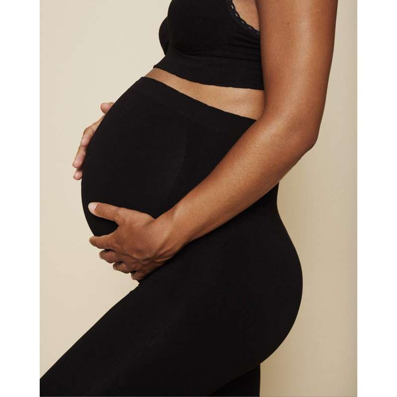 Sorte gravidleggings i økologisk bambusviskose med integrerede support-paneler i lænden og under maven. Bambus er...