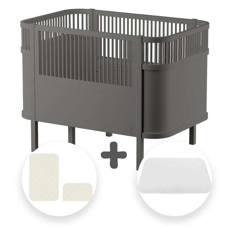 Sebra Sengen og Puslebordet m. Tilbehør - Stone Grey - Deluxe Bundle 1