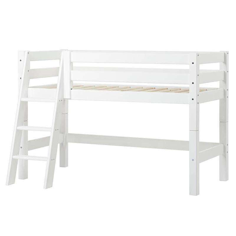 Hoppekids ECO Luxury - Halvhøj Seng m. Ryglæn - Skrå Stige - Flere Størrelser - Hvid