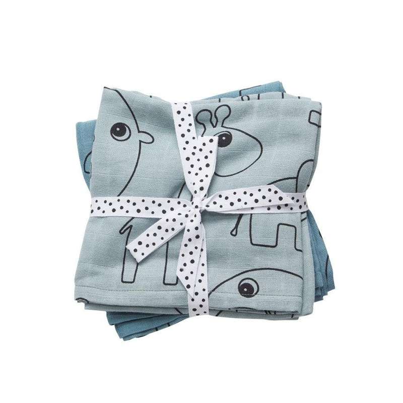 Disse lækre stofbleer med Raffi på i blå nuancer, er et musthave for mor og...