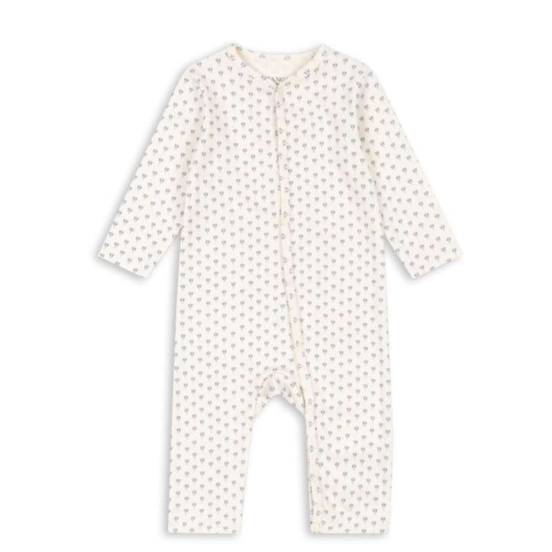 Blød heldragt i økologisk bomuld til nyfødte. Med trykknapåbning i fuld længde foran og ned...
