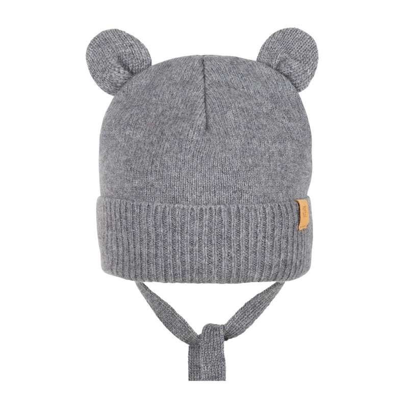 Fin Merino-Kashmir-strik. Babyhue i sødt bjørnedesign lavet af fin og blød strik i 90% merinould...