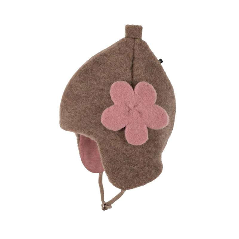 Pure Pure Elefanthue m. Blomst - Uld/Fleece - Moonrock