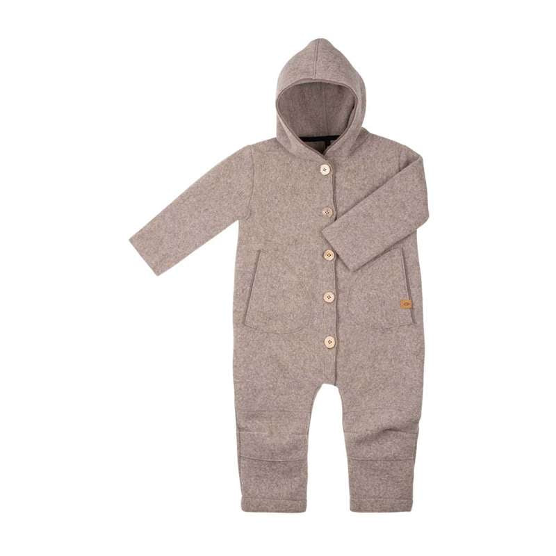 Blød og varm uldfleece. Heldragt med hætte lavet af superblødt fleece i 100% økologisk merinould...