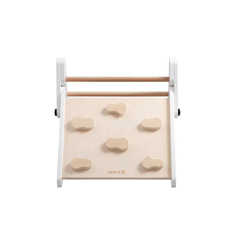 Udfordr dit barn med en sjov klatretrekant i træ, der kan indstilles i to højder...