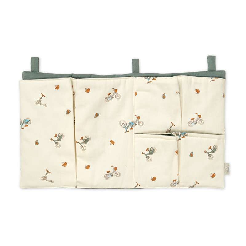Praktisk og pæn Sengelomme til at hænge på tremmesengen, så sutter, bøger, nusseklude og andre...