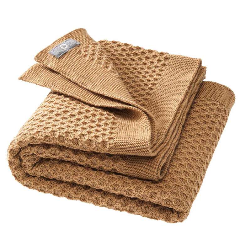 Disana Honeycomb Babytæppe - Merinould - 80x100 cm. - Caramel