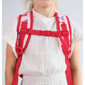 Rygsækkens skulderstropper er polstrede og har et klikspænde, der spændes over brystet på barnet. Dette sikrer både komforten, men også at taskens stropper ikke glider ned over barnets skuldre.