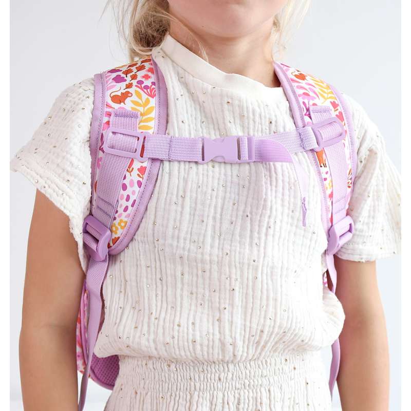 Rygsækkens skulderstropper er polstrede og har et klikspænde, der spændes over brystet på barnet. Dette sikrer både komforten, men også at taskens stropper ikke glider ned over barnets skuldre.