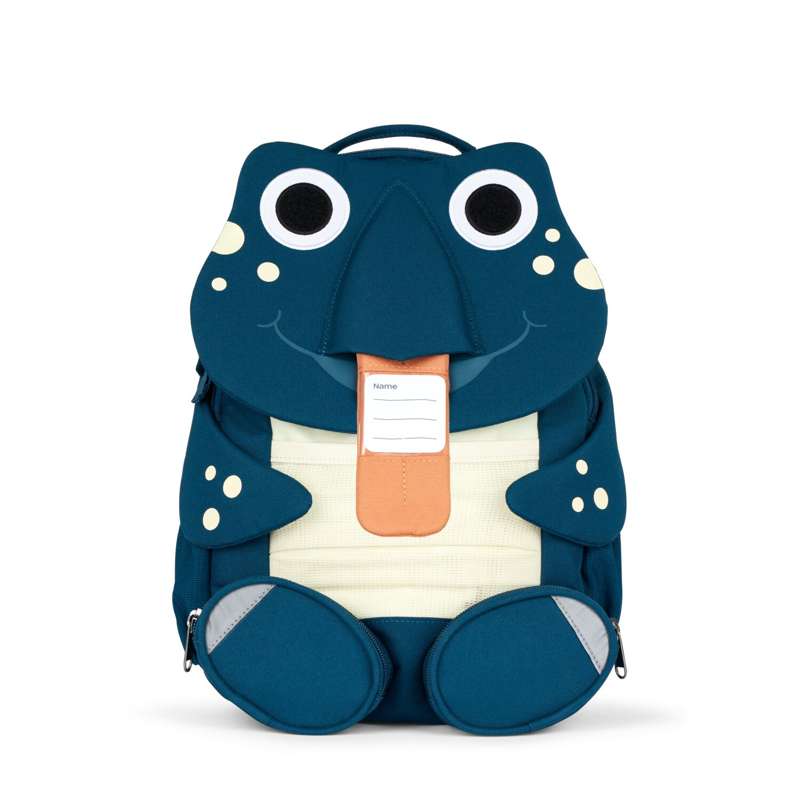 Den søde rygsæk byder desuden på mange små ekstra gennemtænkte egenskaber, så som bærerem, reflekser, arme der kan åbnes til små kram, ekstra stof der gør lynlåsen nemmere at betjene samt små broderede detaljer. Og sidst, men absolut ikke mindst for børnene - tungen kan trækkes ud og ind, og på den kan barnets navn skrives.