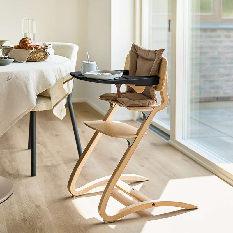 Til Leander Louie™ højstolen har vi udviklet et bakkebord der kan hjælpe både børn og voksne. Nu kan barnet sidde i sin Louie™ højstol og spise, tegne og lege - lige der, hvor forældrene er. Bakkebordet klikkes direkte på højstolens bøjle. Fordi bakken er integreret i bøjlen får barnet ikke sine fingre i klemme mellem bakke og bøjle. Bakken er designet med en fordybning, der holder flydende madvarer og drikkevarer på pladen, og ikke på gulvet.