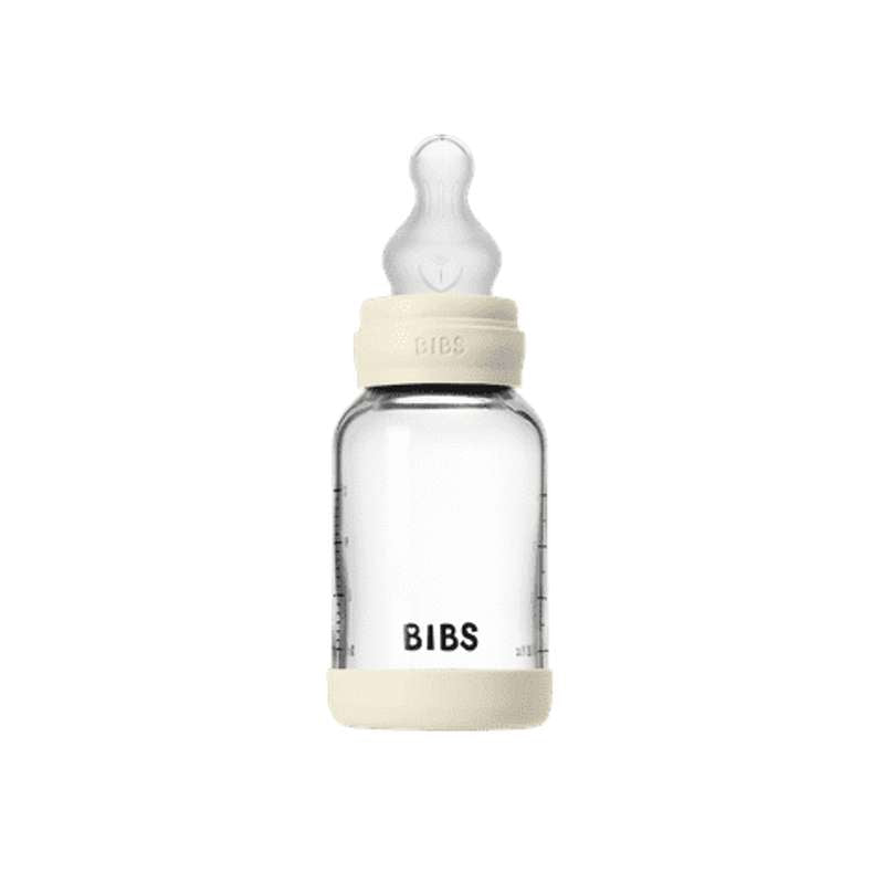 BIBS Bottle - Sutteflaskesæt - Glas - Silikone/Slow Flow/Rund - 120 ml. - Ivory
