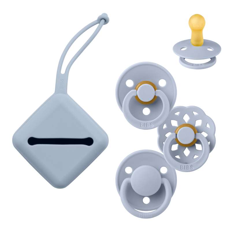 Denne bundle består af 3 stk. BIBS sutter i str. 2. Alle sutterne har et rundt suttehoved i naturgummi. Ligeledes medfølger en sutteboks med plads til de tre sutter.
