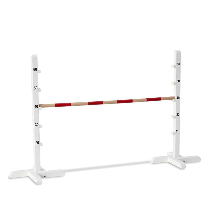 Hestespringet består af tre dele og samles let. De to sidestolper er støtte for tværpinden, som kan reguleres i højden. Så kan både små og store minier springe med stor succes over springet.