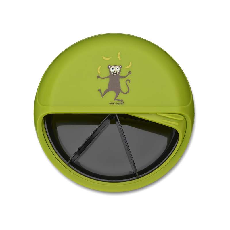 Dine børn vil elske overraskelsen, når de drejer skiven og ser hvad der dukker op. Kassetten/hylsteret skilles nemt fra drejeskiven, så snacksene kan serveres med fuldt overblik.