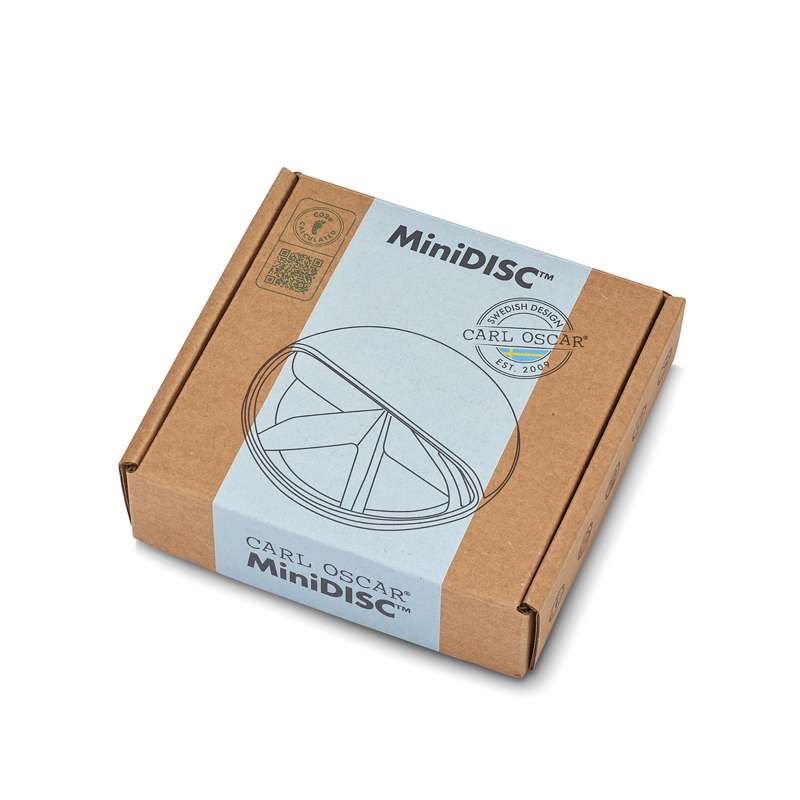 En flot og praktisk snackbox til store som små, som er den mindste i 'familien' med BentoDISC, SnackDISC - og her MiniDISC. MiniDISC er designet som en rund kassette med en rotérbar disc/drejeskive. Drejeskiven har 5 rum, som kan fyldes med lækre snacks, som fx minikiks, rosiner, nødder, agurk, æble, druer eller tørret bær/frugt.