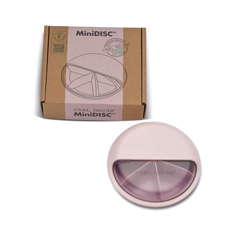 En flot og praktisk snackbox til store som små, som er den mindste i 'familien' med BentoDISC, SnackDISC - og her MiniDISC. MiniDISC er designet som en rund kassette med en rotérbar disc/drejeskive. Drejeskiven har 5 rum, som kan fyldes med lækre snacks, som fx minikiks, rosiner, nødder, agurk, æble, druer eller tørret bær/frugt.