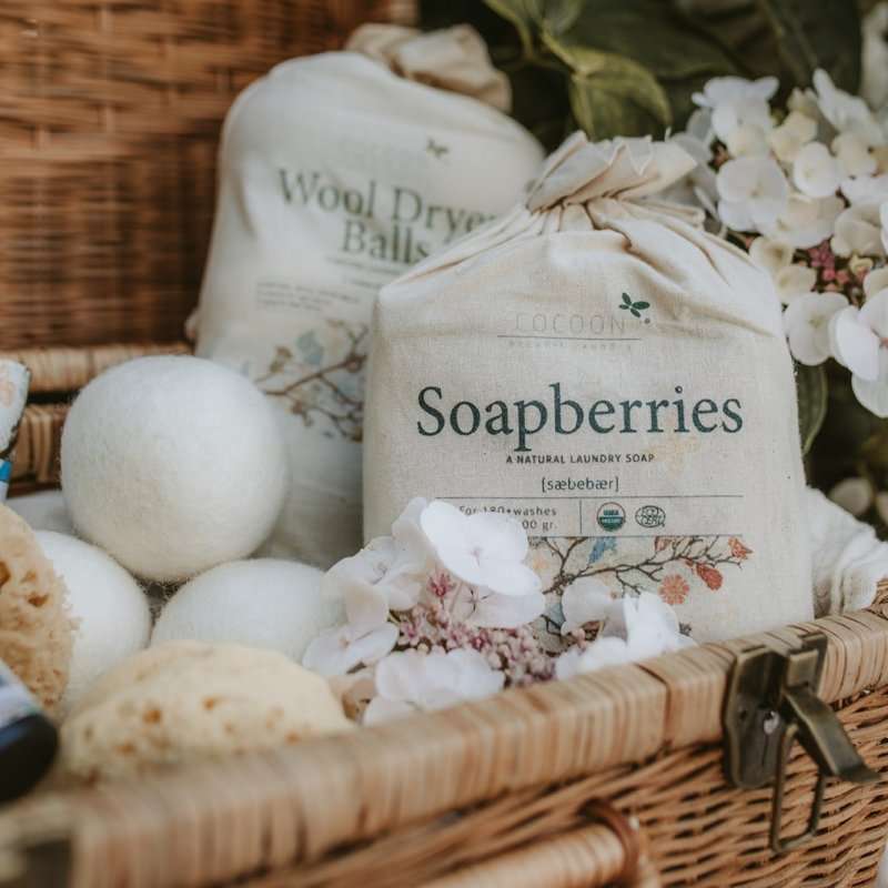 Sæbebær: Kombinér uldboldene med sæbebær for en komplet naturlig vaskeoplevelse. Dit tøj vil blive blødt og bevare farverne bedre – helt uden skyllemiddel eller konventionelt vaskemiddel.