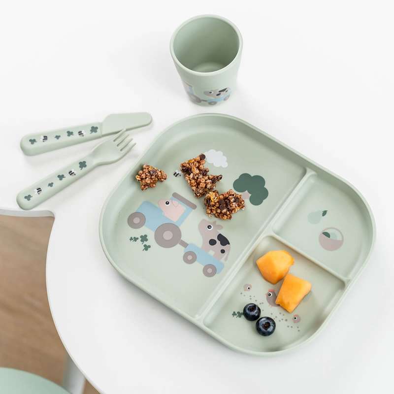 Done by Deer Foodie Spisesæt m. Sugekop - Tiny Farm - Grøn