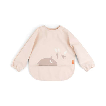 Hagesmækken med lange ærmer og en lomme vil beskytte dit barns tøj ved spisetid eller når I leger med maling, modellervoks eller andre kreative sager. En justérbar dobbelt-lukning sikrer, at hagesmækken passer til både babyer og tumlinger. Den bløde hagesmæk er vandtæt og har praktiske ærmer med elastik, der holder de små tørre. Den er nem at tørre af og holde ren, hvilket sparer dig for en masse vasketøj. Den søde pudderfarvede hagesmæk er dekoreret med Ozzo og fine vandplanter.