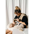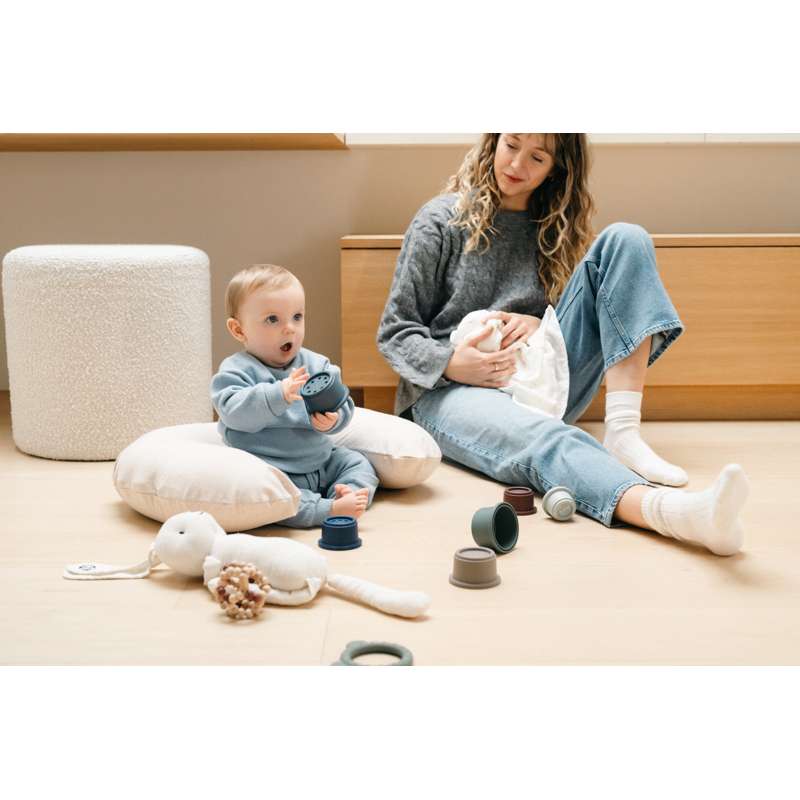 Den runde Doomoo-ammepude giver muligheden for at sidde godt rundt om mors mave. Puden er fyldt med små EPS-kugler, der dannes efter mor og baby's krop. Det er blødt og behageligt og bevarer sin fylde gennem amning uden at synke sammen. På denne måde mister babyen ikke grebet om brystvorten og får en optimal ammeposition.