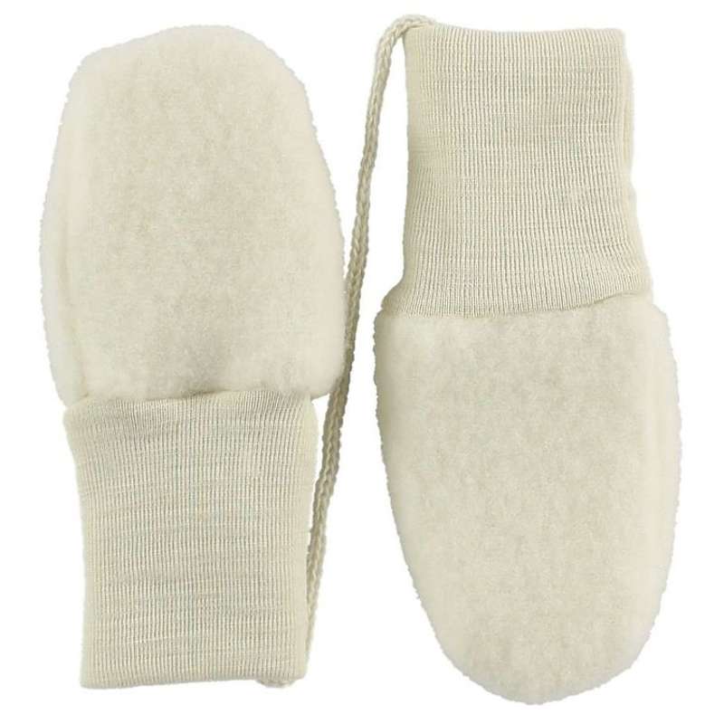 Vanterne er i et stykke og uden tommelfinger. Der er en snor vedhæftet, som kan sættes igennem jakken, så vanterne ikke forsvinder. Den kan nemt klippes af, hvis den ikke skal bruges. Størrelsen passer fra 0-½ år. 100% økologisk ny uld.