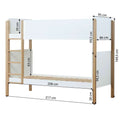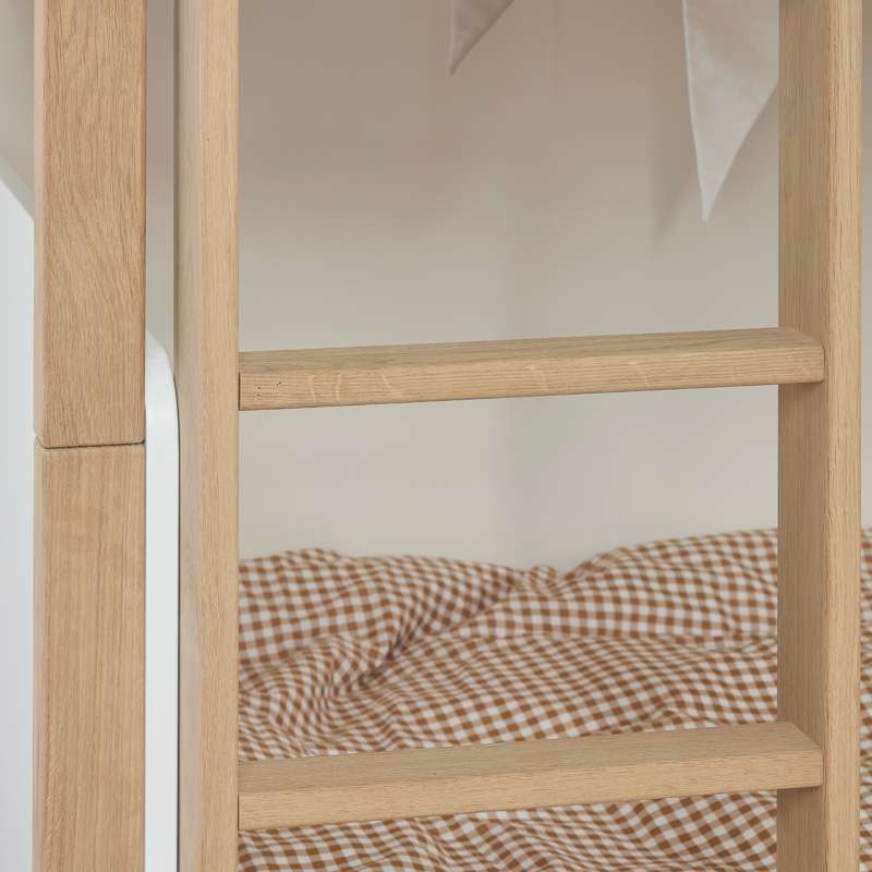 Opdag den elegante køjeseng i en perfekt kombination af funktionalitet og tidløs design. Køjesengen er fremstillet af MDF, som sikrer holdbarhed og en solid konstruktion. Benene og trappen er udført i smukt egetræ, som tilføjer en naturlig varme til sengen og værelset.