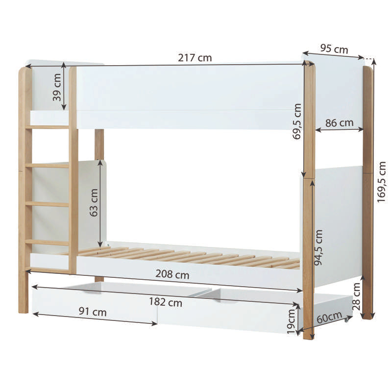 Hoppekids BLEND - 2-i-1 Køjeseng m. Skuffer - 90x200 cm - Egetræ