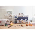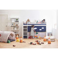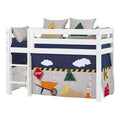 Sjovt forhæng fra danske Hoppekids. Perfekt til når du vil skabe en spændende og eventyrlig stemning på værelset. Dette forhæng fås til en halvhøj seng, køjeseng og mellemhøj seng. Fås i til både 90x200 cm senge og 70x160 cm senge.