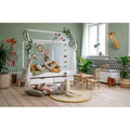 Det bølgende tekstil til hussengen skaber en hyggelig stemning på børneværelset.