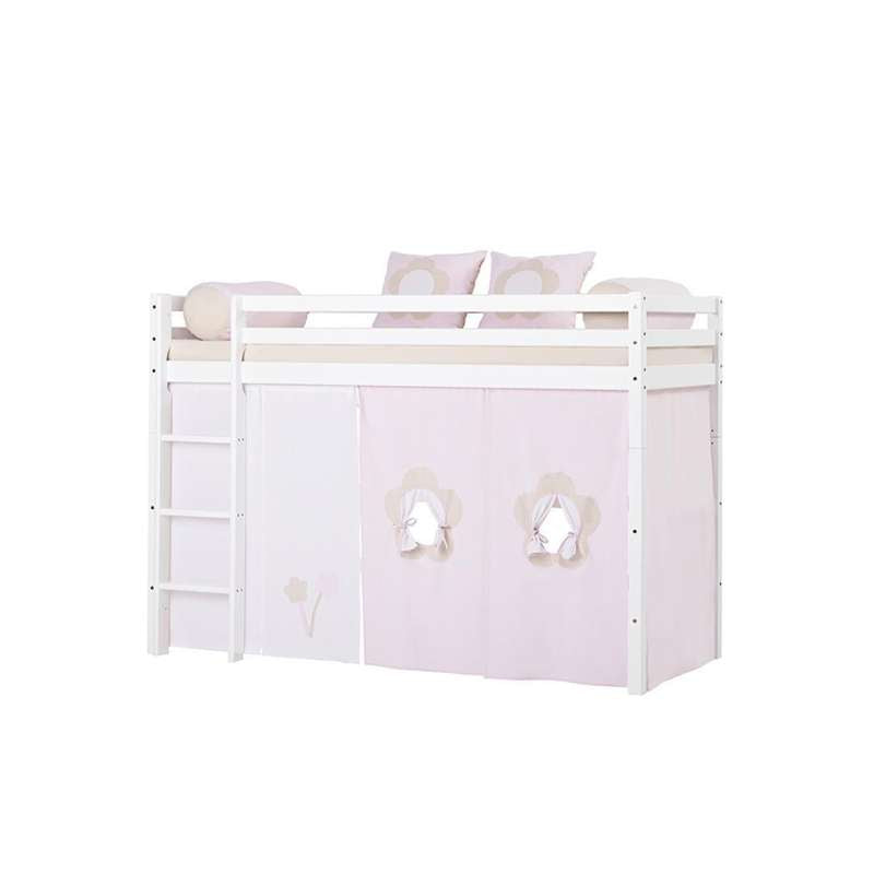 Med dette forhæng fra Hoppekids’ univers, Fairytale Flower, som passer til ECO Dream og ECO Luxury halvhøje senge, etagesenge og mellemhøje senge, skabes et helt specielt gemmested på børneværelset med plads til røverhistorier og hemmeligheder. Dette forhæng danner en hule under sengen som indbyder til hygge, fantasi og leg. Forhænget skaber et udtryk og en stemning på børneværelset. Sammen med de andre produkter i serien, kan der opstå et fantasirigt og kreativt univers.
