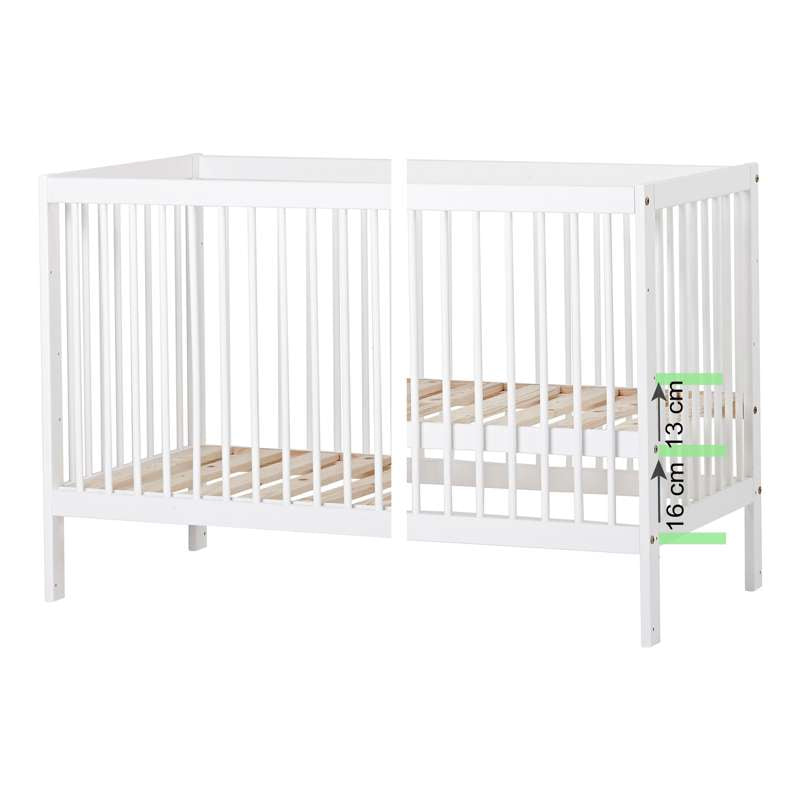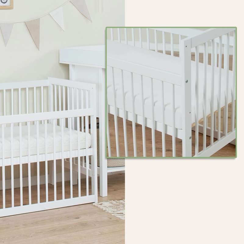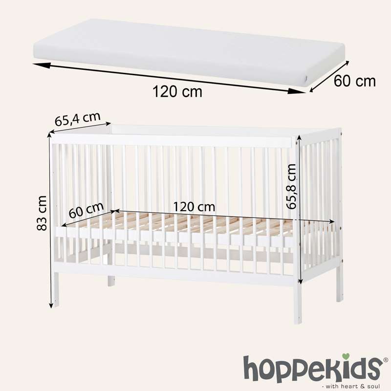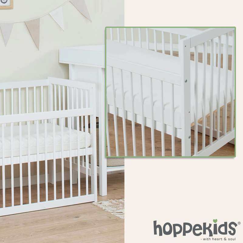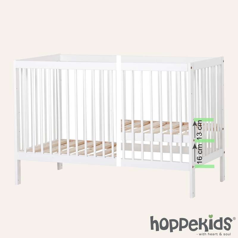 Hoppekids IDA-MARIE - Babyseng m. Skummadras - Justérbar Højde og Sidepanel - Hvid