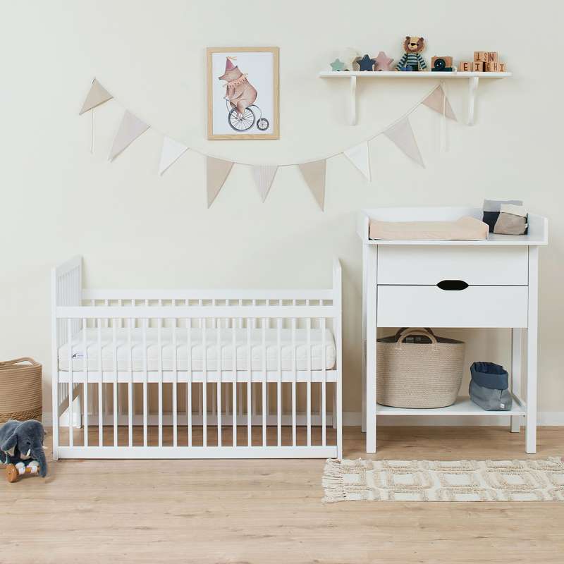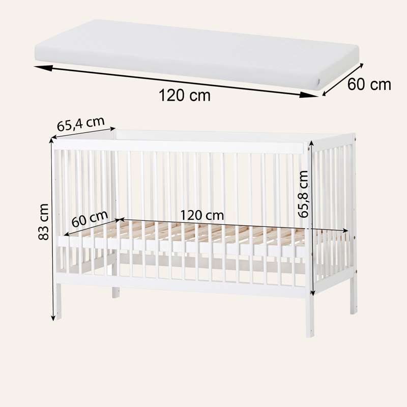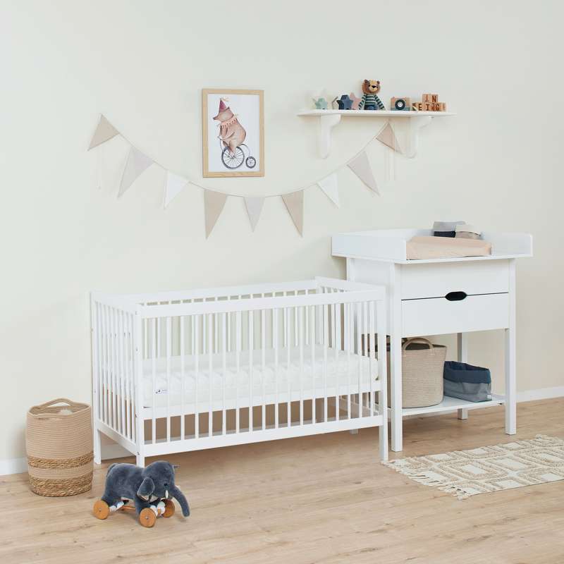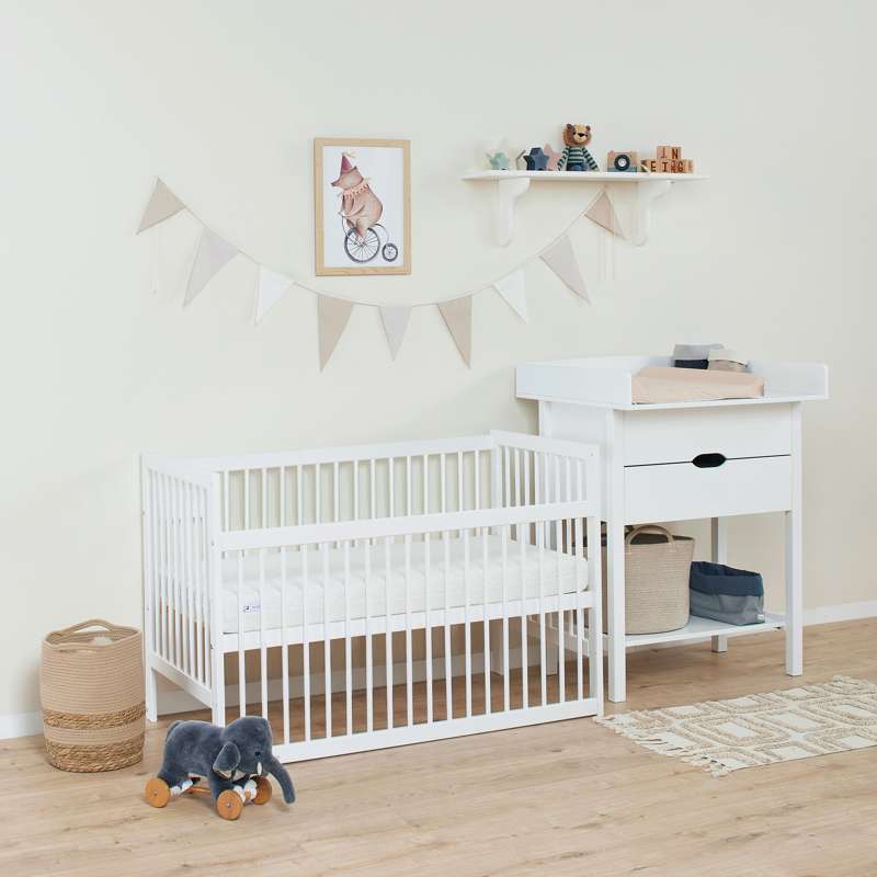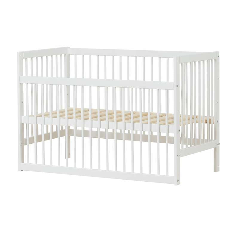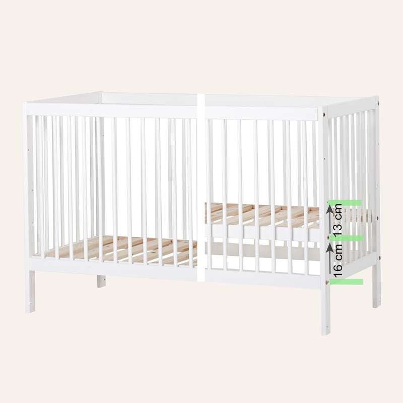 Hoppekids IDA-MARIE - Babyseng m. Skummadras - Justérbar Højde og Sidepanel - Hvid