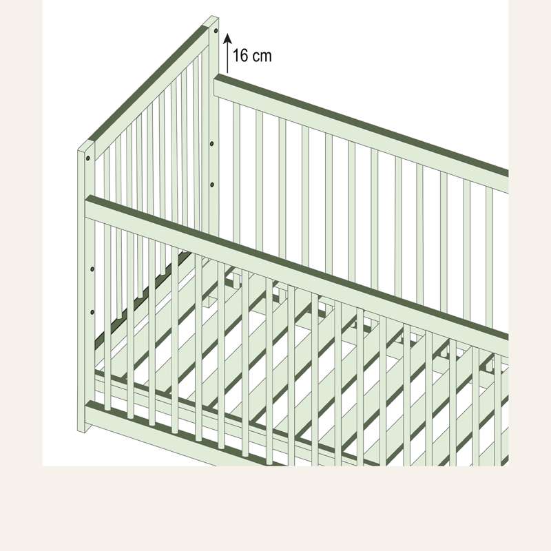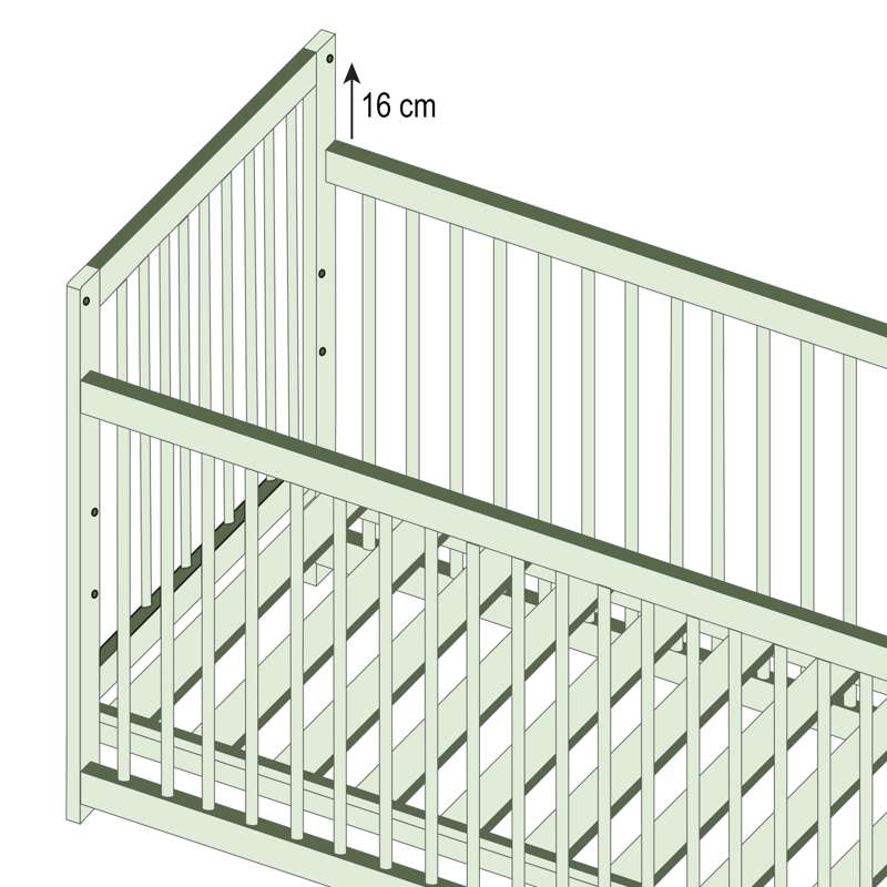 - 16 cm over gulvet – brug denne indstilling, når dit barn kan stå, så de er sikre i tremmesengen.