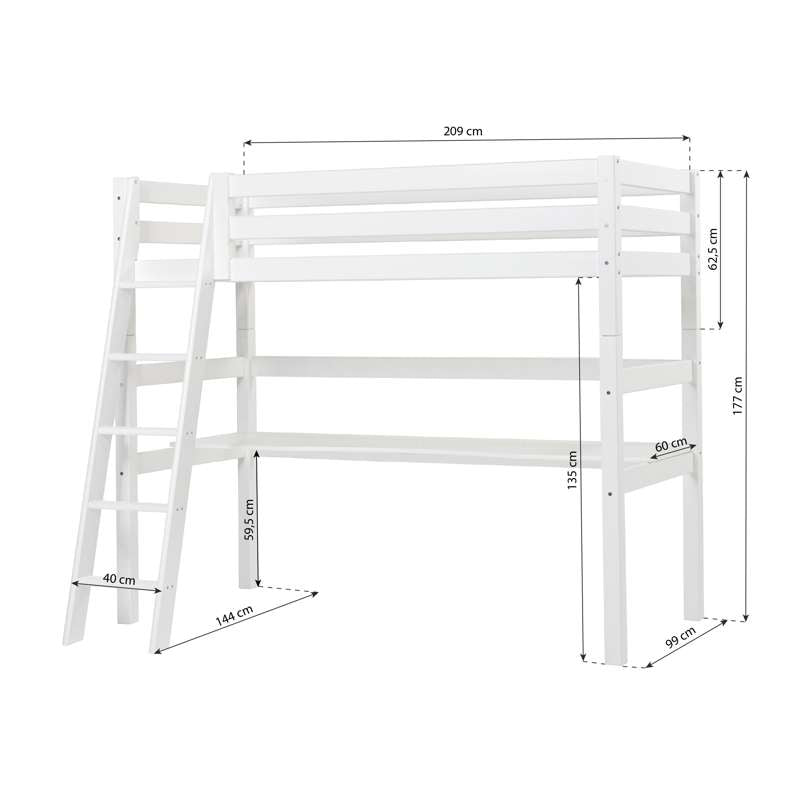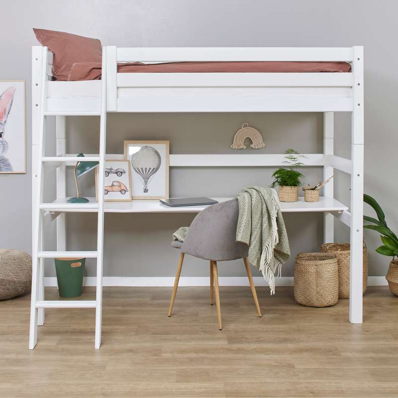 Hoppekids ECO Luxury - Højseng m. Bordplade - 90x200 cm. - Skrå Stige - Fleksibel Indlægsbund - Hvid