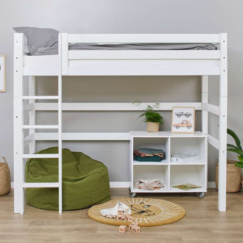 Smart ECO Luxury højseng i størrelse 90x200 cm fra Hoppekids. Sengens højde giver plads til opbevaring, gulvsplads eller arbejdsplads under sengen. Sengen er svanemærket, har livstidsgaranti og er overfladebehandlet med miljøvenlig, vandbaseret lak.