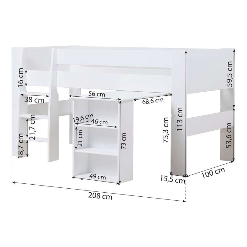 Hoppekids PURE - Halvhøj Seng m. Skrivebord - 90x200 cm - Hvid