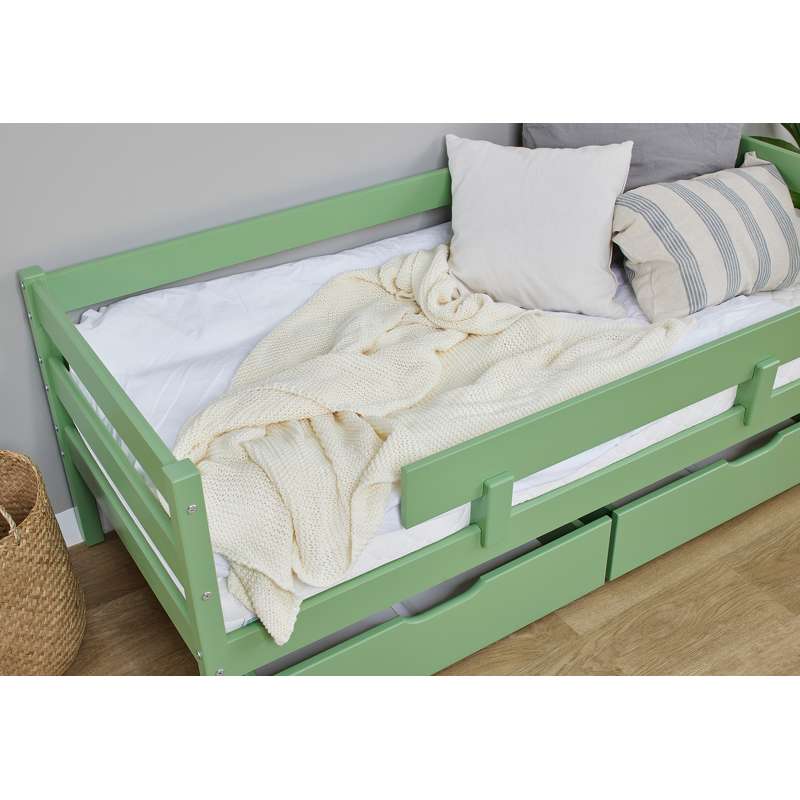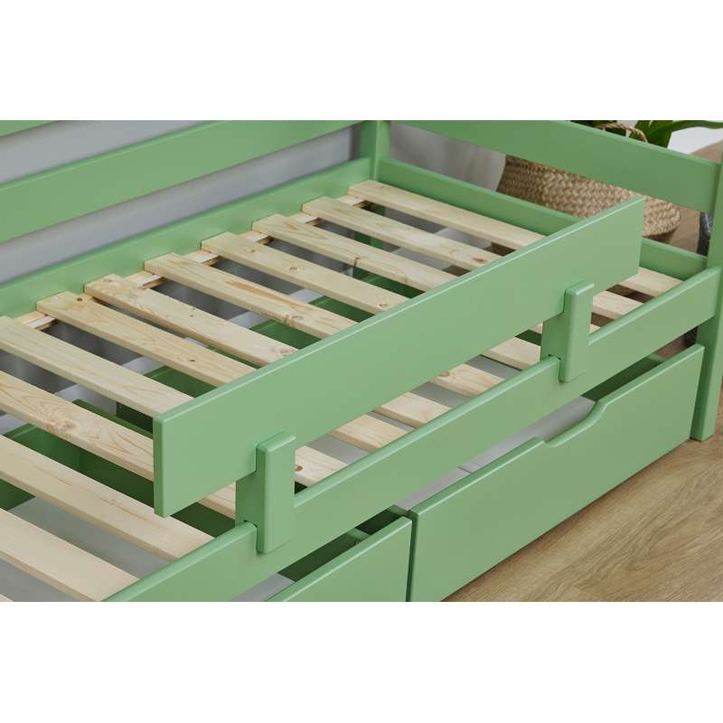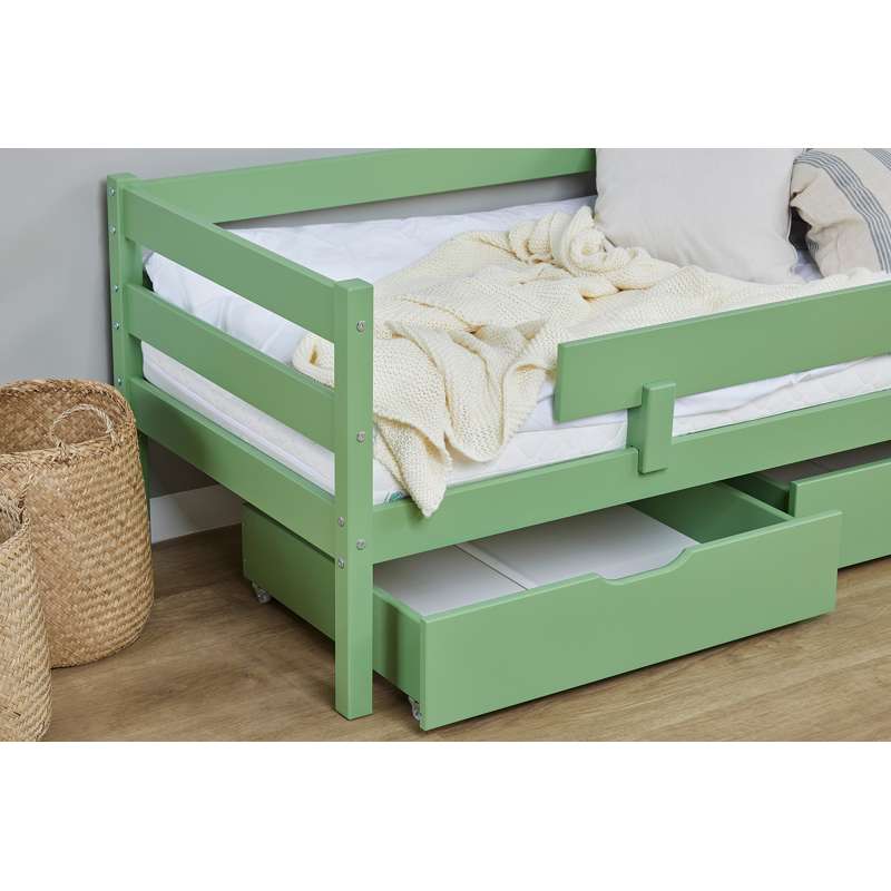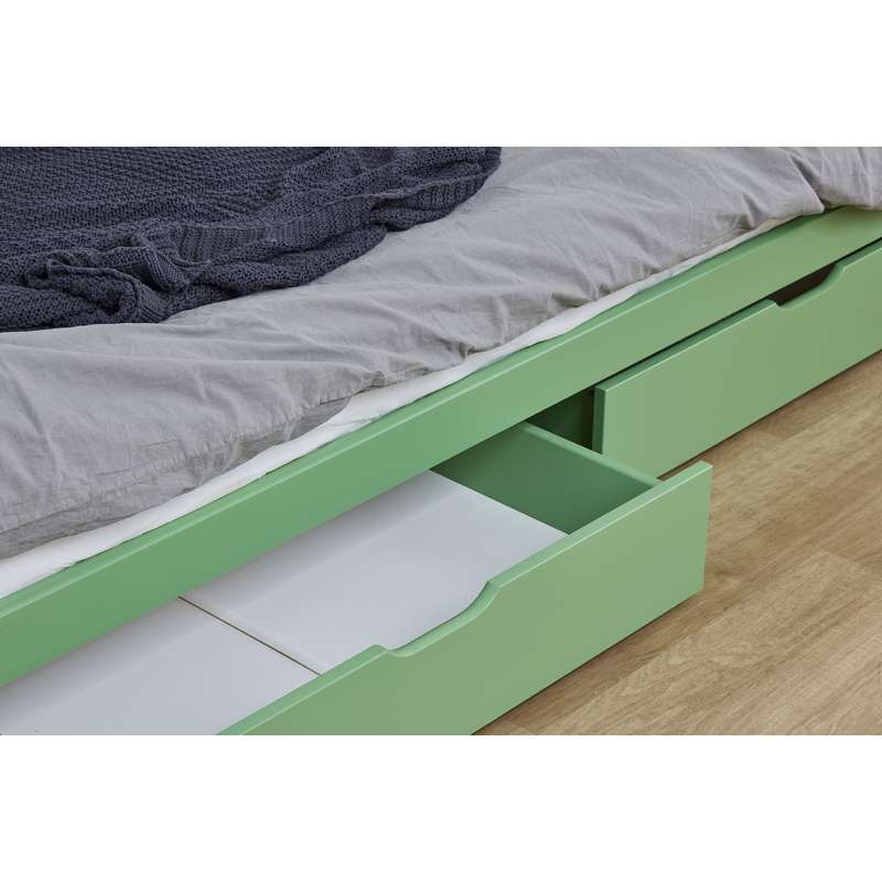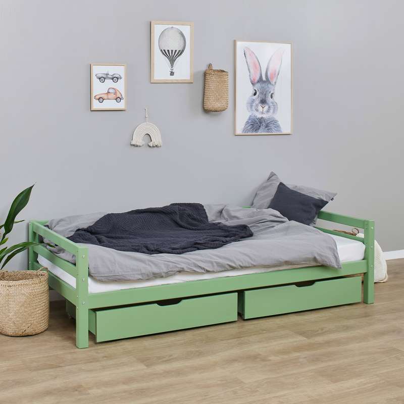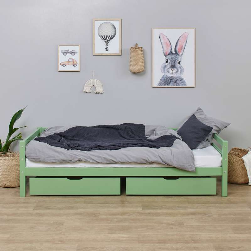 Praktisk Hoppekids skuffesæt i Pale Green på hjul til sofa- og etagesenge. Dette skuffesæt kan bruges både til opbevaring af tøj, legetøj, tæpper eller noget helt fjerde.