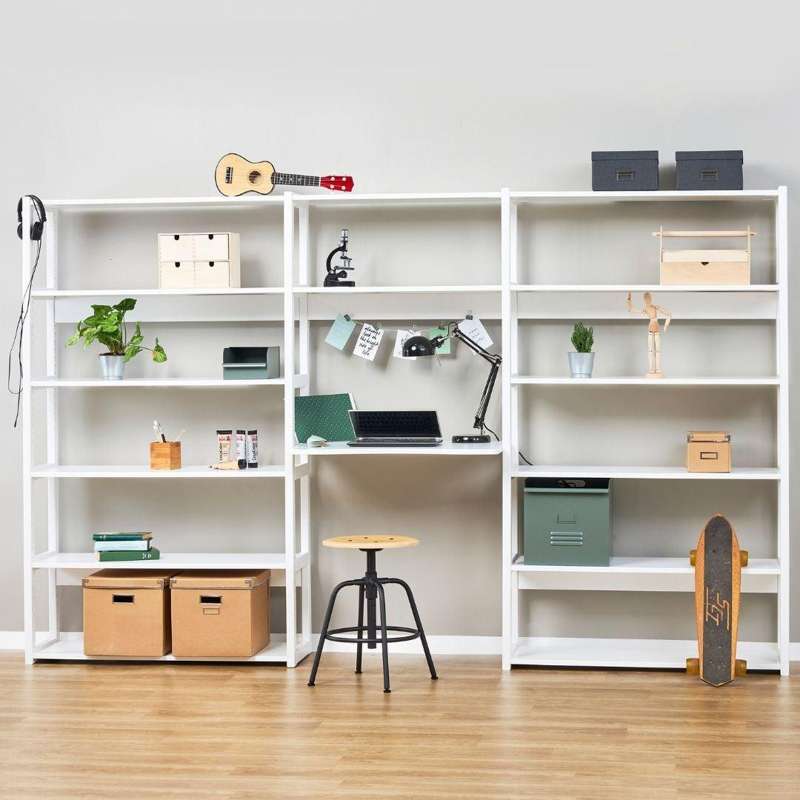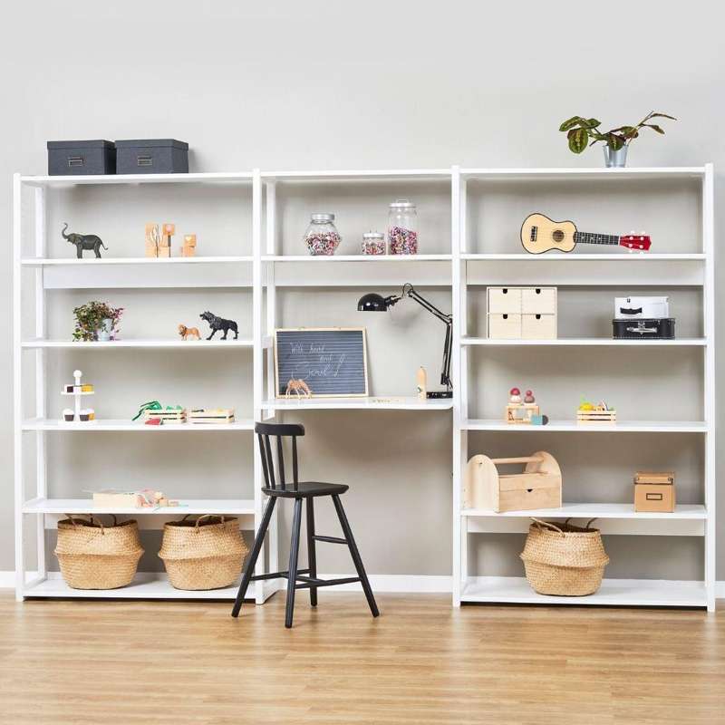 Hoppekids STOREY - Reol - 3 Sektioner m. 12 Hylder og Skriveplade - Flere Størrelser - Hvid