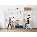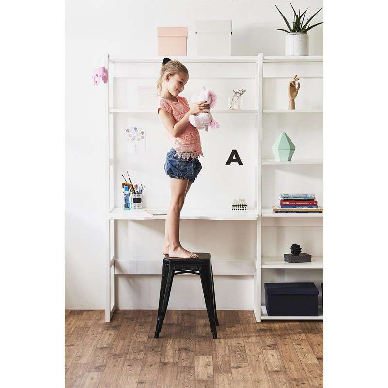 Med denne løsning fra Hoppekids' fine serie, STOREY, får du alt den opbevaringsplads du kan ønske dig! Med plads til alt fra bamser, bøger og små dimser får du samtidig en fantastisk arbejdsplads, hvor der er plads til at dit barn kan sidde og lave lektier eller tegne. Både skriveplade og hylder kan placeres i 56 mulige positioner pr. sektion, hvormed man nemt kan få plads til høje- som lav ting på hylderne samt tilpasse den rigtige højde for skrivebordet, for at opnå en god, ergonomisk arbejdsstilling.
