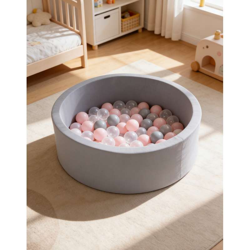 Boldbassinet er lavet i Standard PU skum og betrukket i Oeko Tex Standard 100 certificeret jersey - 80% bomuld, 20% polyester. Der medfølger 100 bolde Ø7 cm.