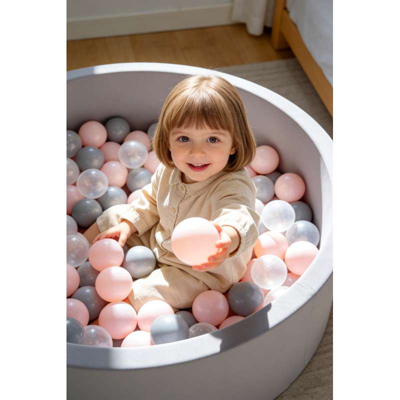 NB.: vi anbefaler, at der tilkøbes ekstra bolde for at fylde bassinet godt op (Billedet af produktet indeholder ekstra bolde i klar farve - boldbassinet indeholder kun 100 bolde i hvid).