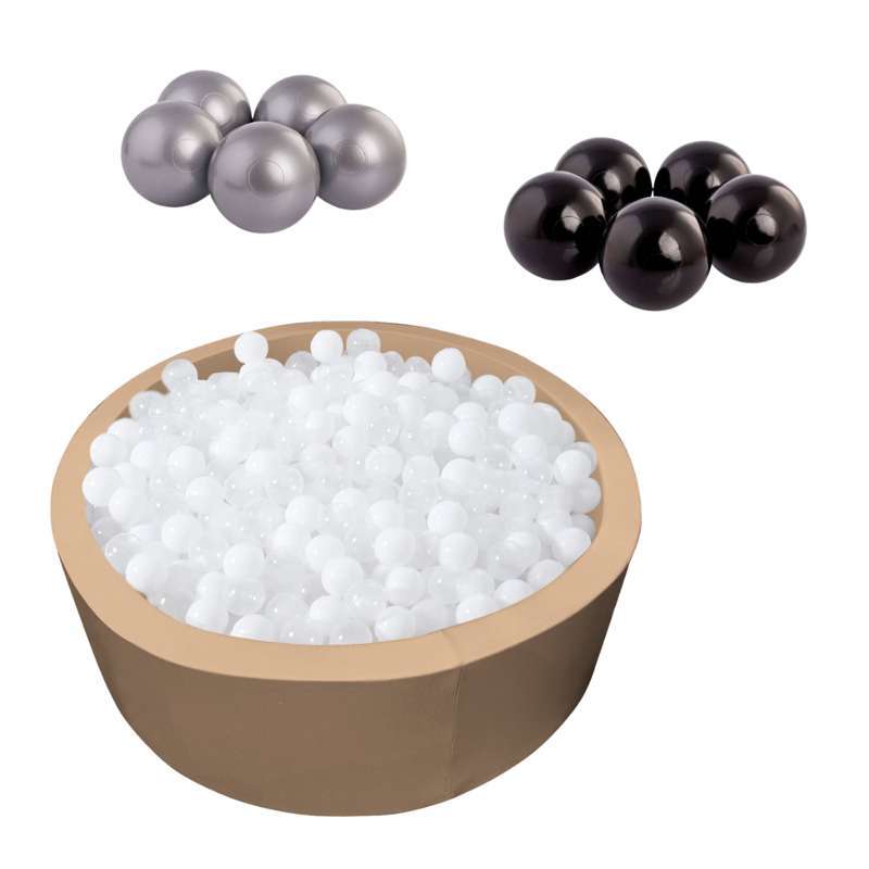 Boldbassinet er lavet i Standard PU skum og betrukket i Oeko Tex Standard 100 certificeret jersey - 80% bomuld, 20% polyester. Der medfølger i alt 300 bolde Ø7 cm. i bundlen