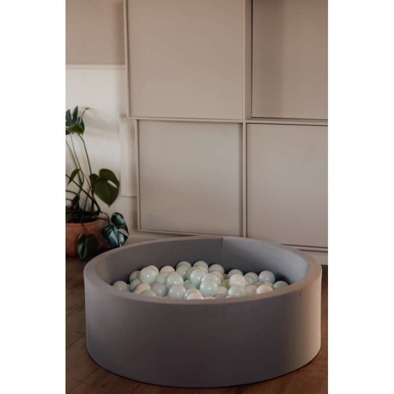 Boldbassinet er lavet i Standard PU skum og betrukket i Oeko Tex Standard 100 certificeret jersey - 80% bomuld, 20% polyester. Der medfølger i alt 300 bolde Ø7 cm. i bundlen