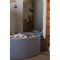 Boldbassinet er lavet i Standard PU skum og betrukket i Oeko Tex Standard 100 certificeret jersey - 80% bomuld, 20% polyester. Der medfølger i alt 300 bolde Ø7 cm. i bundlen
