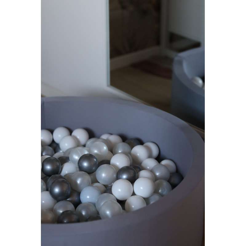 Boldbassinet er lavet i Standard PU skum og betrukket i Oeko Tex Standard 100 certificeret jersey - 80% bomuld, 20% polyester. Der medfølger i alt 300 bolde Ø7 cm. i bundlen
