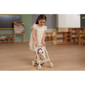 De bløde gummihjul reducerer støj og beskytter gulve, samtidig med at de giver barnet en mere stabil og sikker køreoplevelse. Det gør det lettere for små ben at gå selvsikkert og trygt med vognen – både inde og ude.