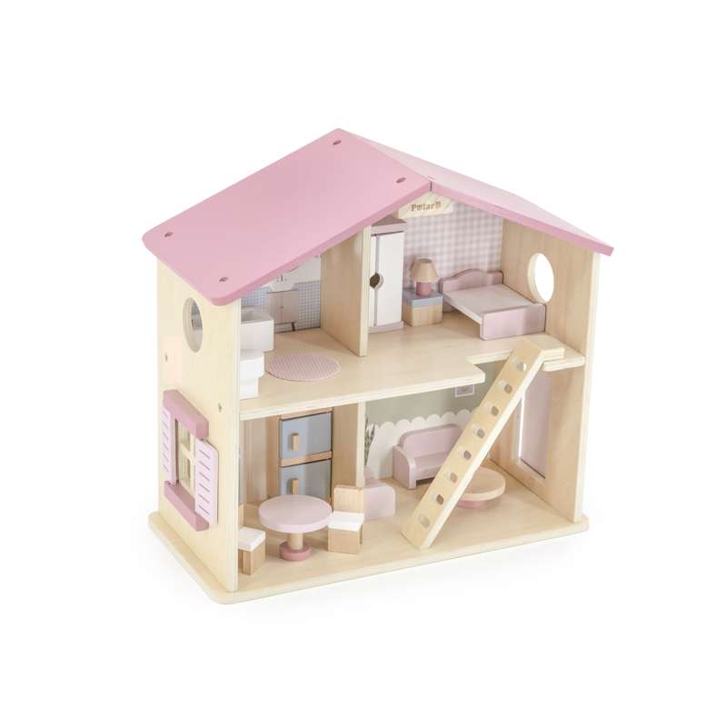 Dette hyggelige og smukt indrettede dukkehus er som skabt til fantasifuld leg og mange timers underholdning. Det indbyder børn til at skabe deres egne små verdener, fyldt med hverdagssituationer, historier og rollelege.