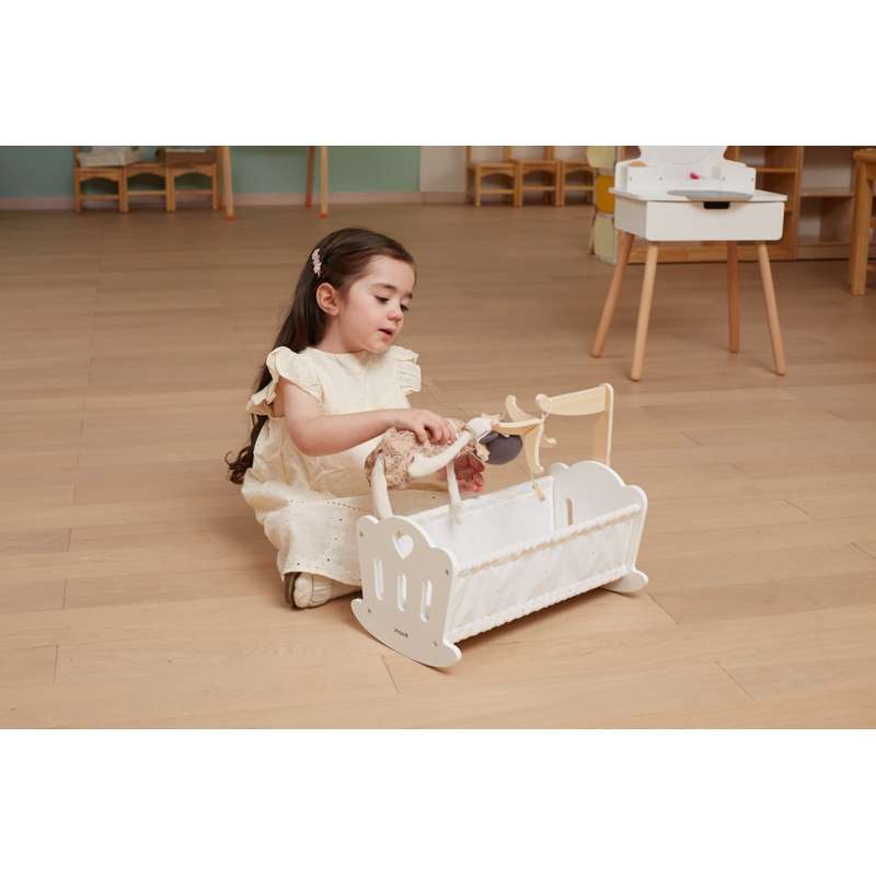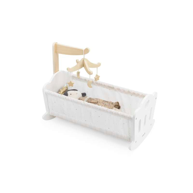 Læg dukken trygt til at sove i denne smukt fremstillede vugge. Dukkesengen er et charmerende tilbehør til rollelegen og passer til dukker op til 38 cm.